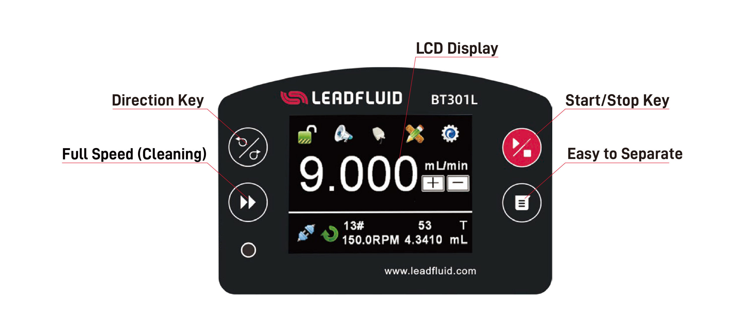 • Easy dispensing function, it realizes the repeat timing quantitative dispensing without the time controller.