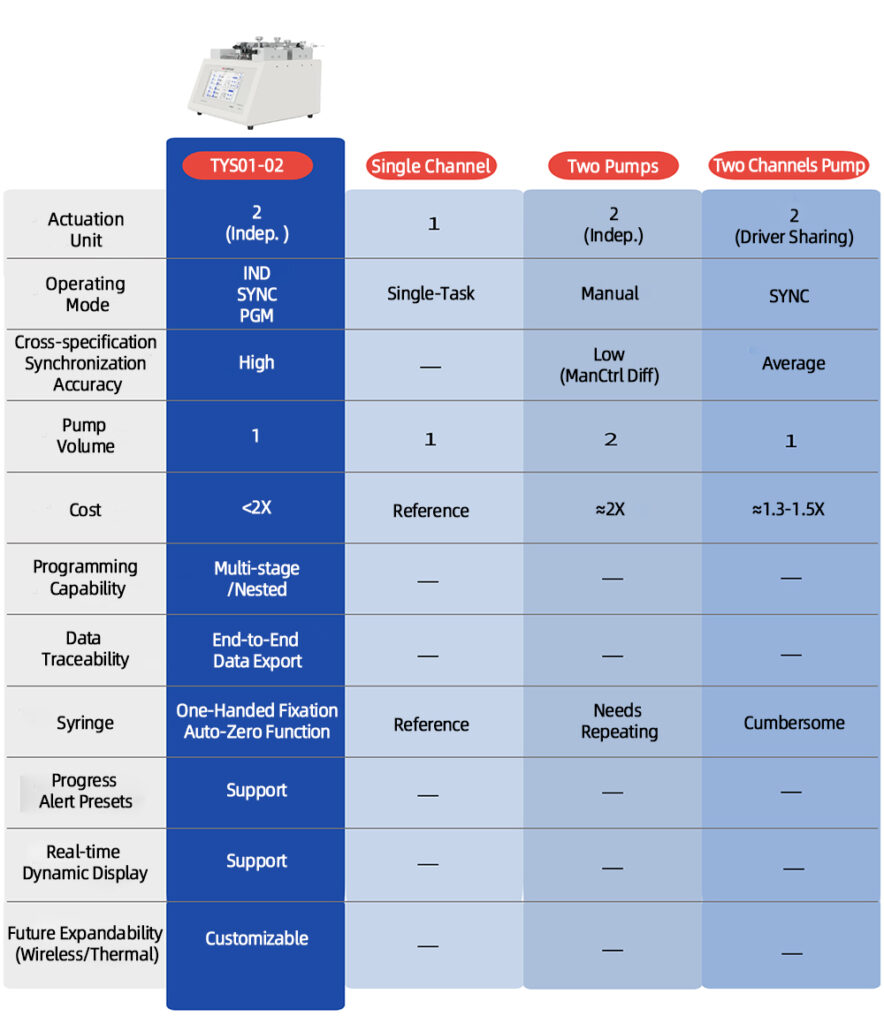 Compared to multiple single-pump setups, the TYS01-02 reduces parameter drift and operational burden while balancing stability, flexibility, and traceability – particularly suitable for: Low-shear long-term cultures and Complex rhythmic drug administration experiments