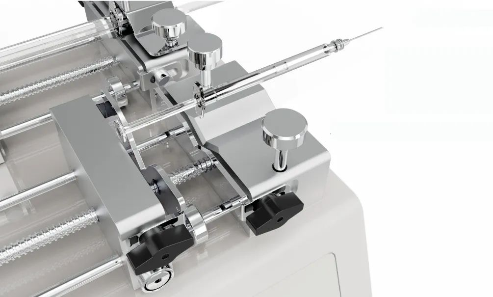 Two independent pushers, equivalent to combining two syringe pumps into one unit, support various syringe specifications from 0.5μL to 100mL, covering a flow rate range of 8pL/min to 150mL/min. Researchers can flexibly combine different syringe sizes on a single device to meet various flow ratio and pathway requirements.
