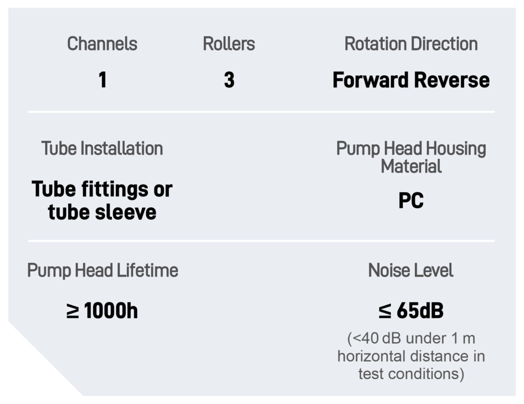 The pump head is made of high‑strength engineering plastic, offering excellent rigidity and wear resistance. Even at high rotational speeds, it can run continuously for over 1,000 hours, greatly reducing maintenance frequency and operational costs.